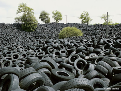 This photograph is from a tyre dump in France, I think this photo is really good because it shows such a contrast in both the colour of the tyres compared to the sky which is almost white, and also the forestry that is growing despite the amount of tyres blocking most of them from as much sunlight and rain, it looks like the tyres are replacing the greenery.